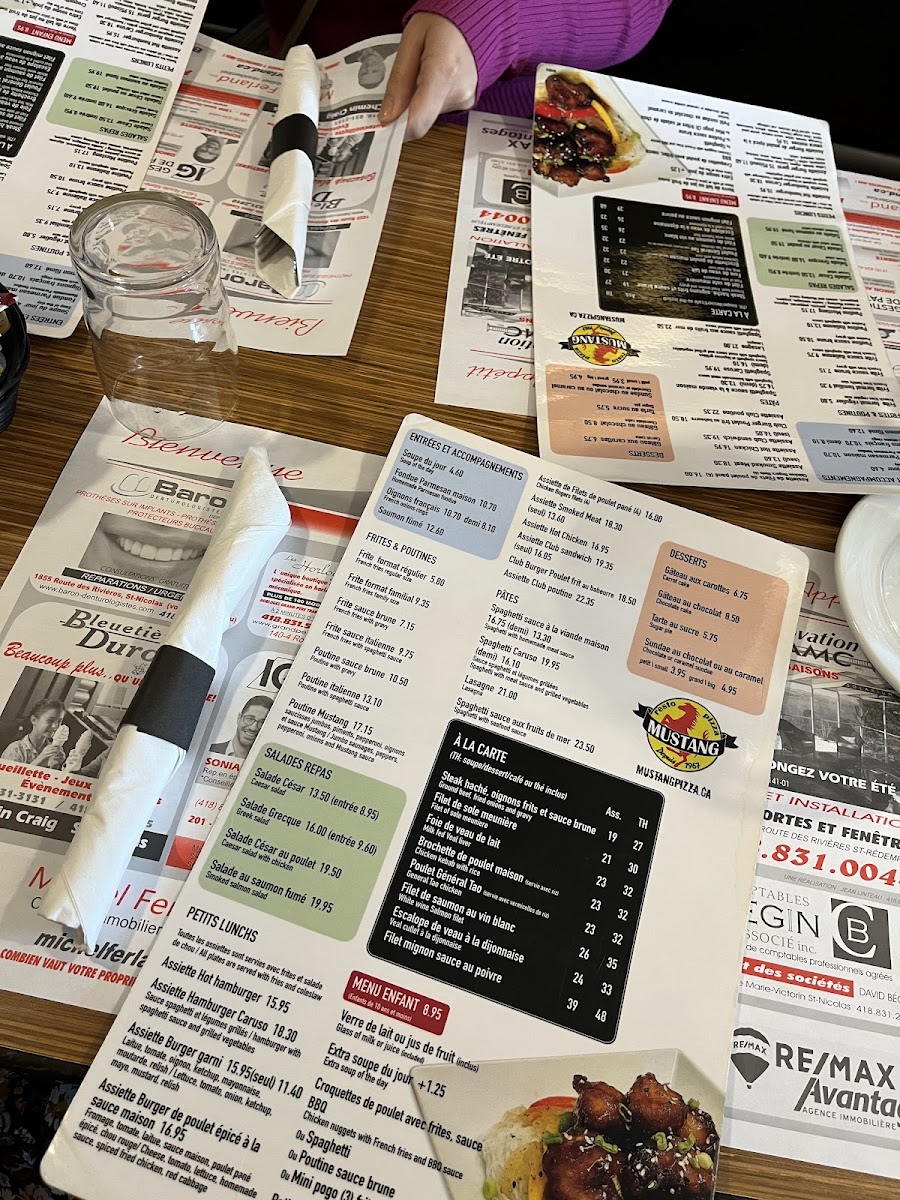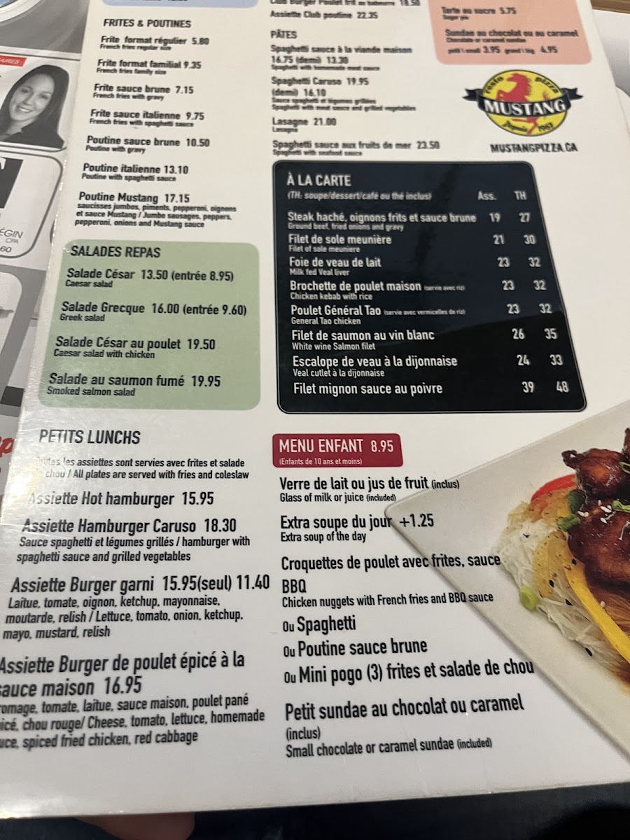 I don’t always write a review so when I do the restaurant must be great! We are relocating to a new province and Levis was on our way. This restaurant was definitely worthwhile. I brought my 3 year old son and my mom and we all enjoyed ourselves. The atmosphere was great and inclusive. The cooking was traditional family style home cooking and it didn’t disappoint. Ps. The chocolate cake..... to die for. It was so delicious! All the food we ordered ( spaghetti, pizza, Caesar salad and club sandwich) was well liked by all of us. Definitely worth stopping in Levis again just so we can come back to Mustang Pizza Restaurant. P.s. we are not French language speakers, yet we still felt welcomed and confident to order our meals.